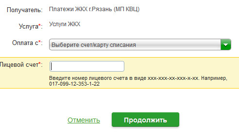 3) Выбрать организацию Платежи ЖКХ г.Рязань (МП КВЦ)